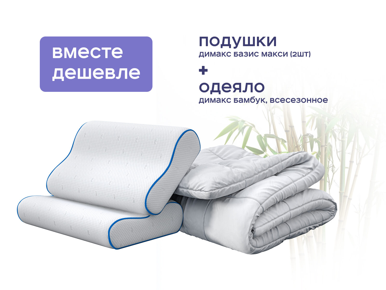 Комплект одеяло Димакс Бамбук всесезонное + подушка Базис Макси 2 шт. — симбиоз природной чистоты и инженерной точности для вашего идеального сна. Покупая набор, вы экономите до 48% и получаете экологичное одеяло с бамбуковым наполнителем и две анатомические подушки, которые вместе создают условия для глубокого восстановления. Забудьте о бессоннице из-за духоты или болей в шее — этот комплект как курорт, созданный только для вас – адаптируется к вашему телу и микроклимату.