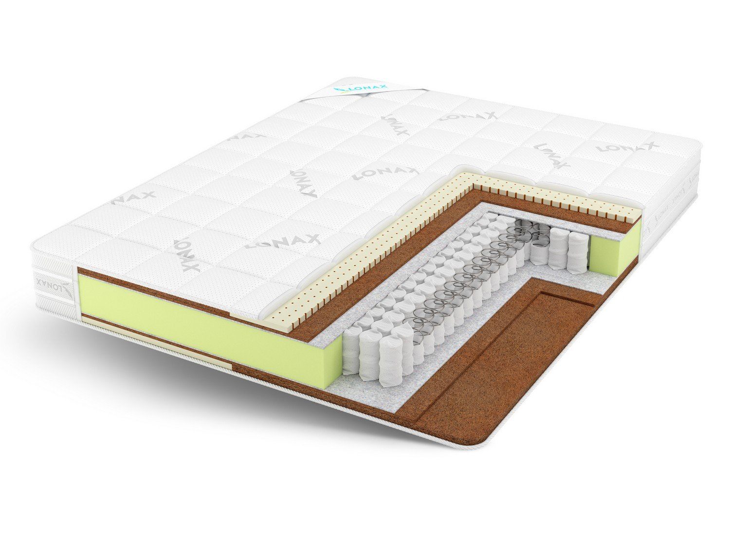 Матрас прекрасно подойдет парам с большой разницей в весе (более 30 кг). Матрас имеет в основе независимый пружинный блок TFK, где на каждый квадратный метр приходится 256 автономно работающих пружин. Независимые пружины правильно принимают нагрузку разных частей тела и создают хороший ортопедический эффект. Блок TFK рекомендуется людям со средним и малым весом и здоровым позвоночником. Наполнители матраса полностью натуральные гипоаллергенные материалы. Модель двусторонняя и имеет разную жесткость сторон. С одной стороны используется латексированная кокосовая койра, придающая жесткость и высокие ортопедические свойства, а так же обеспечивает оптимальную упругость и долговечность матраса. С другой стороны используется натуральный латекс, который придает мягкость и эластичность матрасу. Он обладает отличной износоустойчивостью, не проминается, не провисает, не создает уплотнений под тяжестью тела, не портится под действием влаги и сохраняет свою форму в течение 20 лет.Чехол матраса выполнен из бельгийского жаккарда, простёганного материалом на основе хлопка.