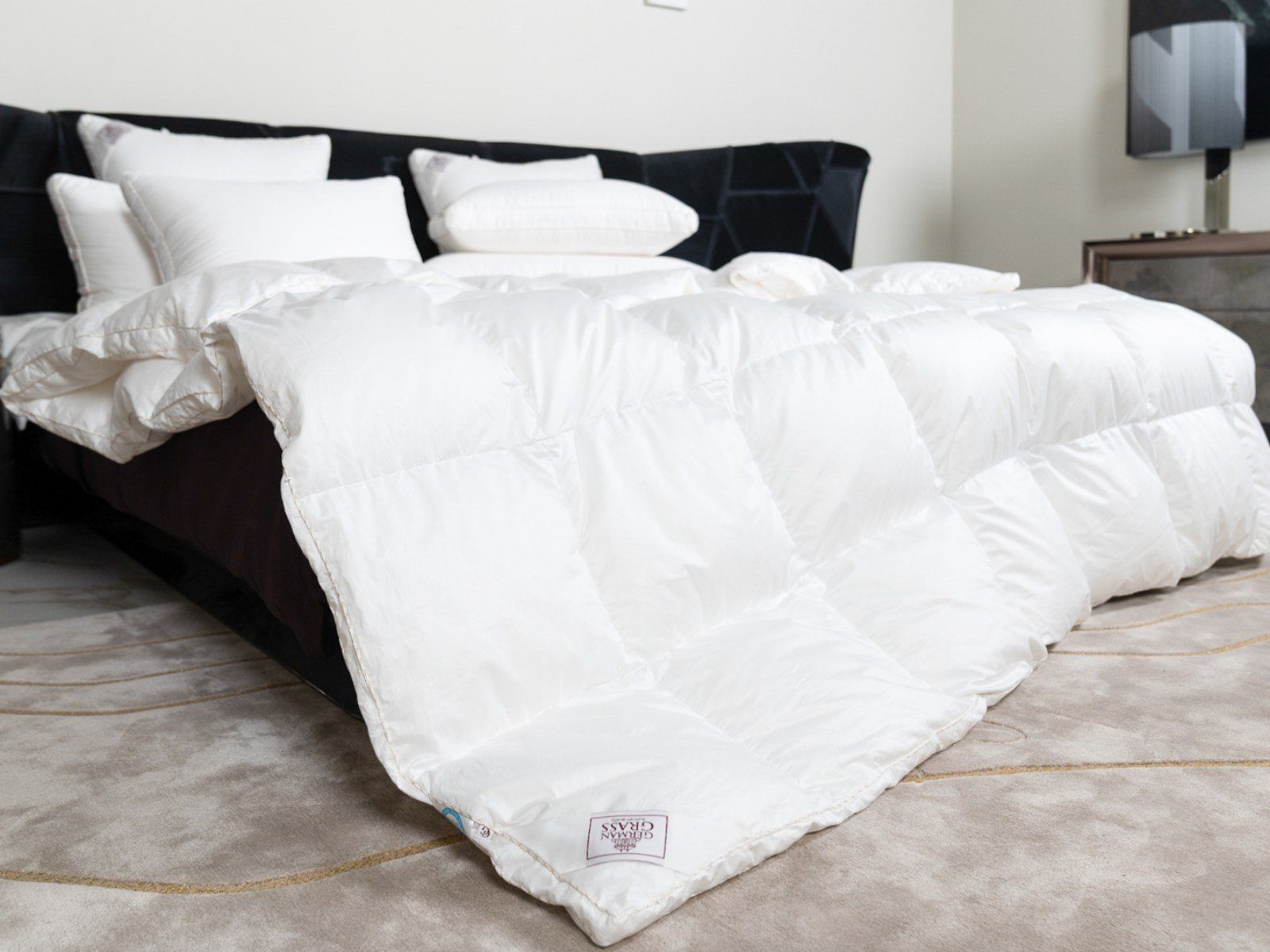 Конструкция изделий коллекции и технология их производства не менее роскошны, чем применяемые в ней материалы: созданные вручную кассетные одеяла с бортиком, состоящие из равномерно заполненных пухом box-кассет, отличаются воздушностью и обеспечивают сбалансированный микроклимат. Широкий бортик в подушках создает дополнительную поддержку головы и мягко разгружает шею во время сна. В трехкамерных моделях внутреннее пухо-перовое ядро обеспечивает несминаемый объем и увеличивает срок службы изделий. Допускается стирка при температуре до 30°С.