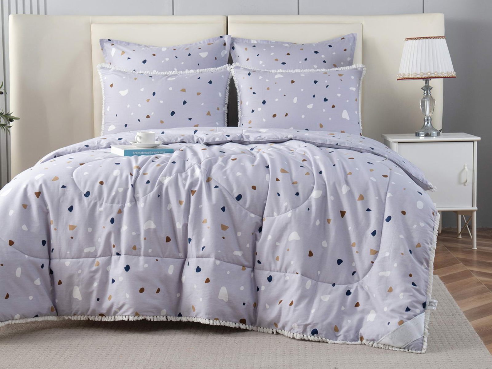 В комплекты комфортеров с одеялом Бернадетт входят наволочки, простыня и легкое всесезонное одеяло. Оцените это современное и очень удобное решение, которое идеально подходит тем, кто не любит возиться с пододеяльниками.