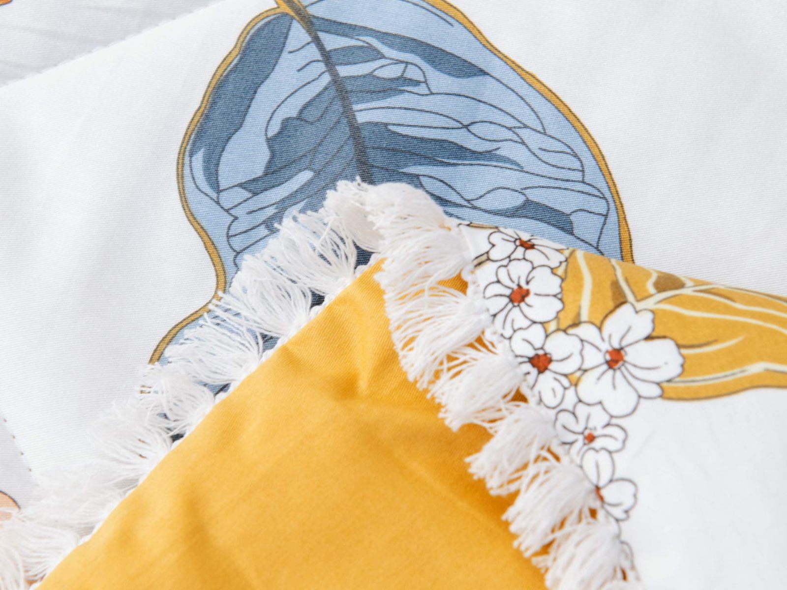Особенность: кант на одеяле и наволочках декорирован бахромой.