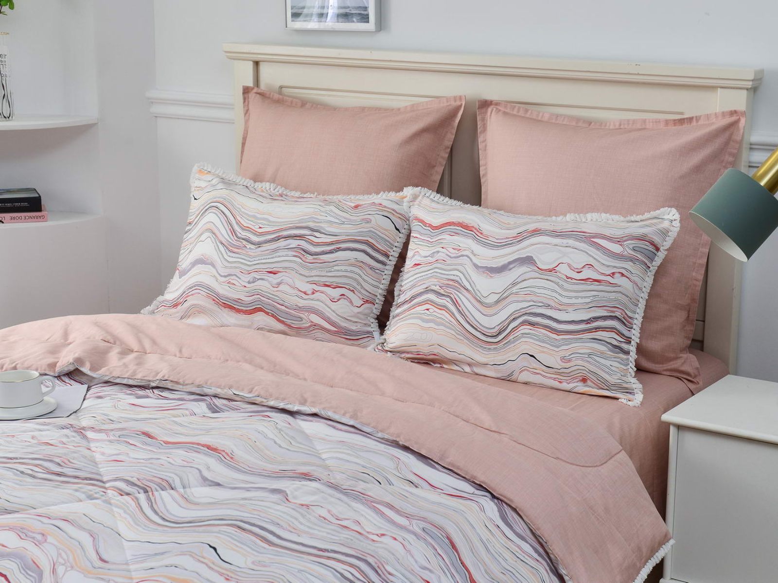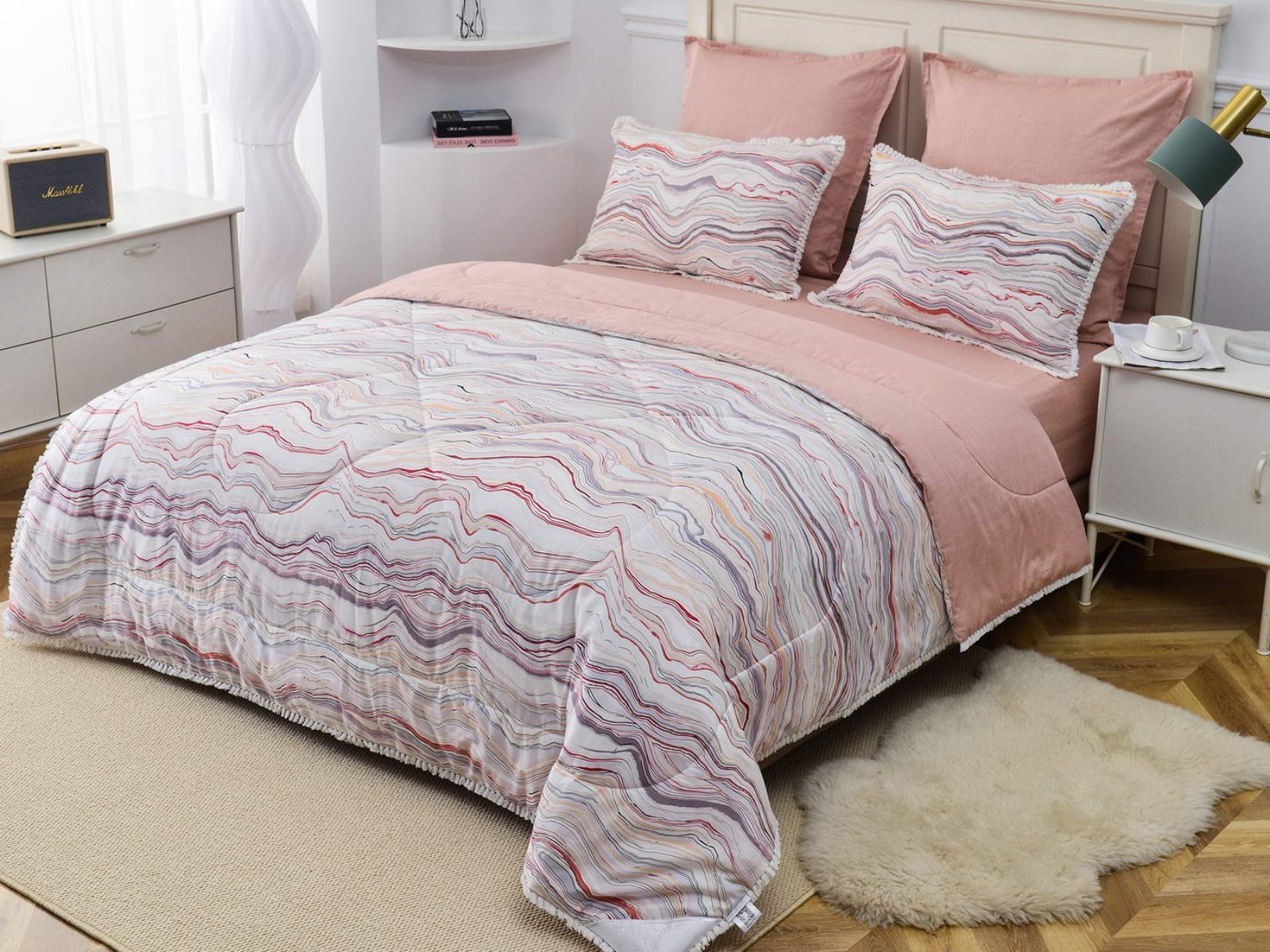 В комплекты комфортеров с одеялом Бернадетт входят наволочки, простыня и легкое всесезонное одеяло. Оцените это современное и очень удобное решение, которое идеально подходит тем, кто не любит возиться с пододеяльниками.