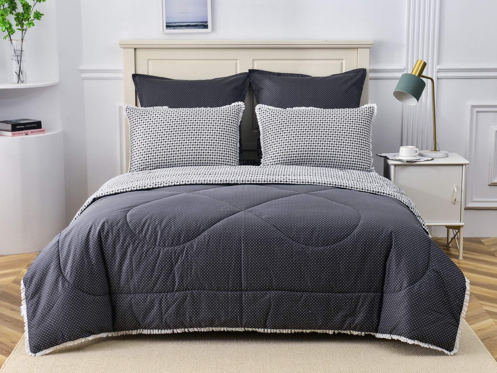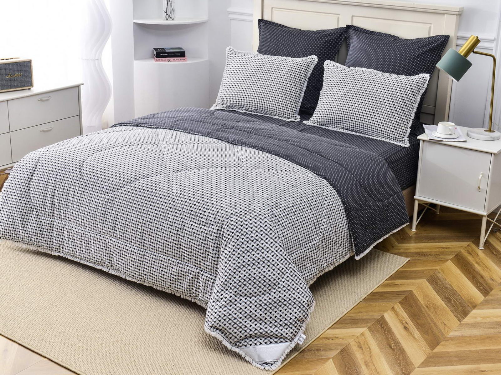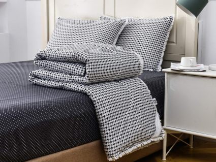 В комплекты комфортеров с одеялом Бернадетт входят наволочки, простыня и легкое всесезонное одеяло. Оцените это современное и очень удобное решение, которое идеально подходит тем, кто не любит возиться с пододеяльниками.