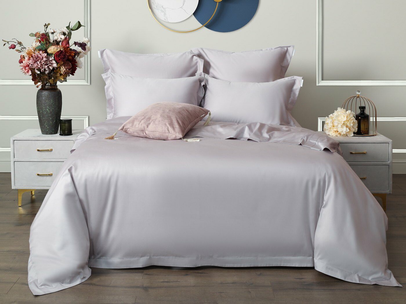 Натуральный состав из 100%-го хлопка обеспечивает гипоаллергенные свойства материала, он охлаждает в жаркую погоду и согревает в холодное время года. Мако-сатин плотностью 300ТС- является тканью класса люкс.