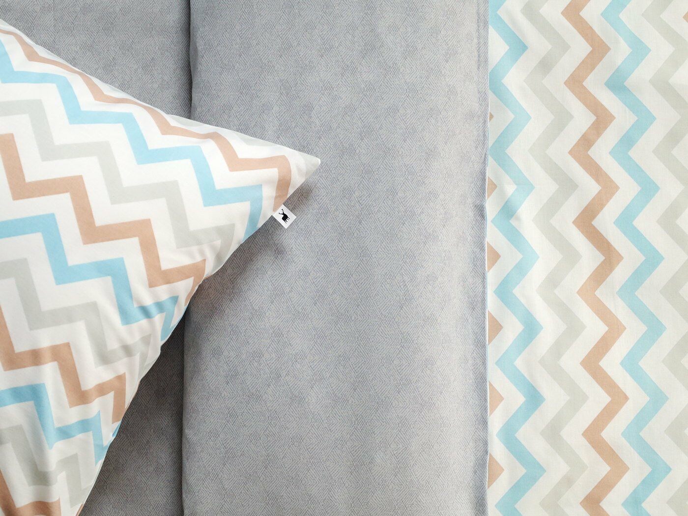 Пододеяльник –двусторонний: верх из ткани А (принтованная ткань), обратка из ткани В (однотонная рогожка), с потайной молнией.