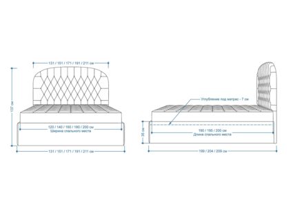 Мягкая кровать с обивкой из велюра.