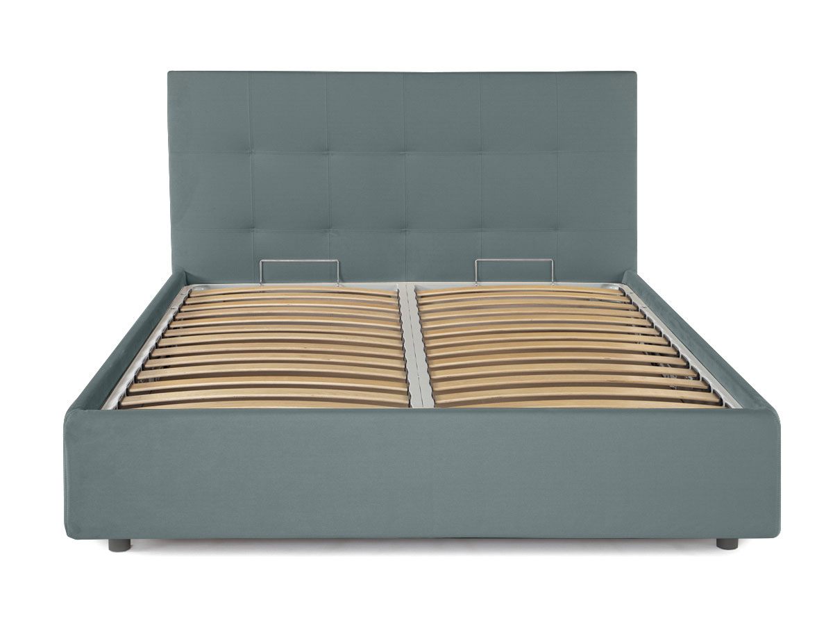 Кровать оснащена основанием с ламелями и подъемным механизмом. Рекомендуемая высота матраса до 27 см, вес матраса до 50 кг.