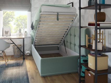Для удобства проноса изделия в любые дверные проёмы возможно заменить стандартный цельнометаллический каркас основания на разборный (в любой комплектации: ортопедическое основание на ножках или основание с подъемным механизмом) — без доплаты. Заказ на кровать принимается только в комплекте с основанием. При длине спального места 190 см кровать по умолчанию комплектуется разборным основанием.
