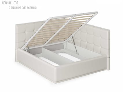 Для определения варианта исполнения угла требуется "встать" по длинной стороне угловой кровати, лицом к длинной боковине и определить, с какой стороны будет изголовье: изголовье со стороны левой руки - вариант исполнения "левый", изголовье со стороны правой руки - "правый" (на фото представлена кровать с исполнением угла — левый).