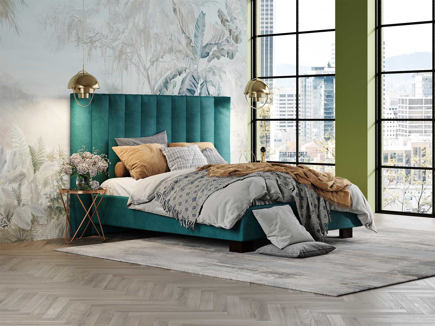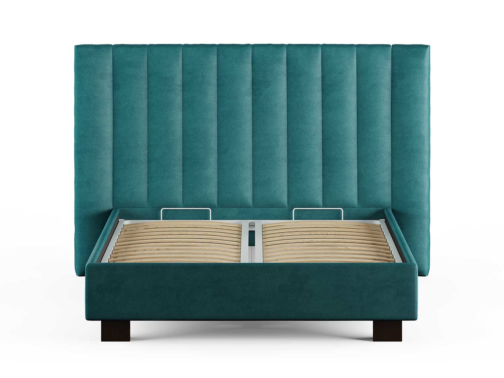 Кровать соответствует самым модным тенденциям и прекрасно впишется в современный интерьер просторной спальни. Высокая спинка с мягкими элементами выглядит эффектно. Поворотный механизм боковых элементов изголовья меняет форму, создавая более уютную атмосферу в спальне. Увеличенная прочность кровати достигается за счет металлического каркаса по периметру. Массивные ножки, выполнены из бука цвета венге. Расстояние от пола до царг способствует легкой уборке под кроватью, в том числе роботом – пылесосом.