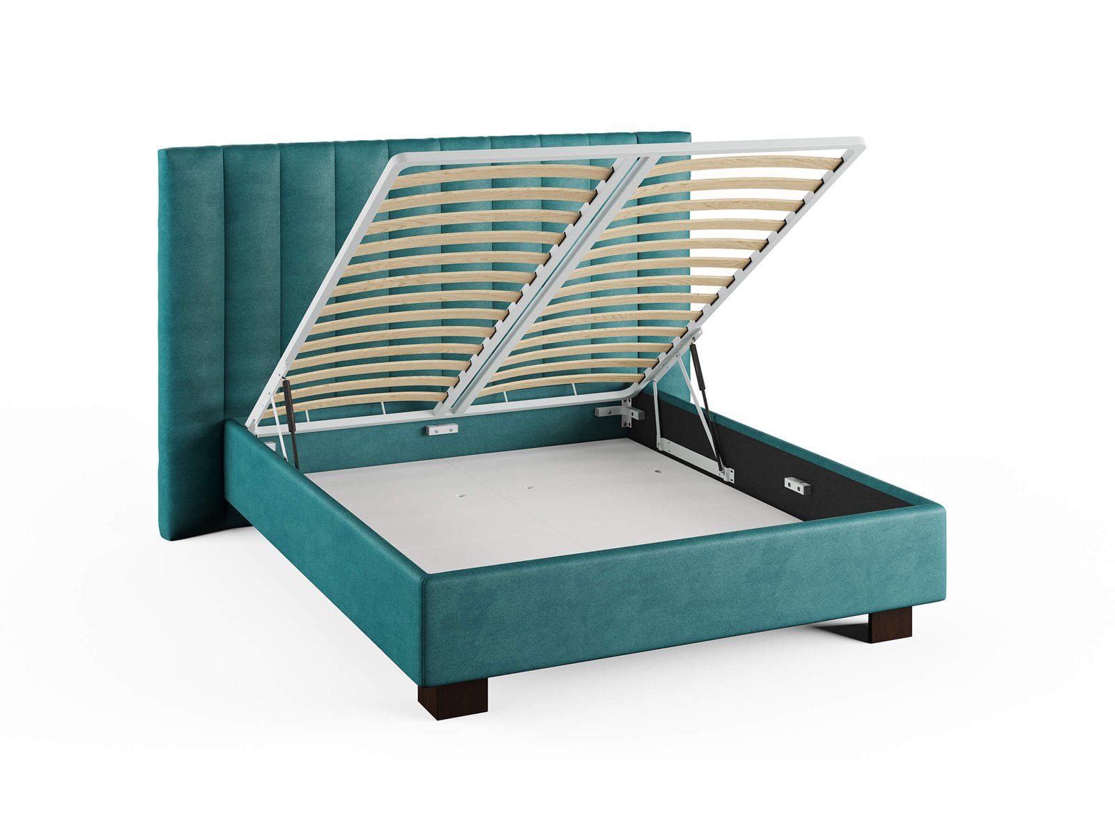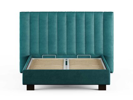 Кровать комплектуется металлическим основанием и подъемным механизмом со вместительным бельевым ящиком. Дно бельевого ящика легко сдвигается для обеспечения уборки под кроватью.