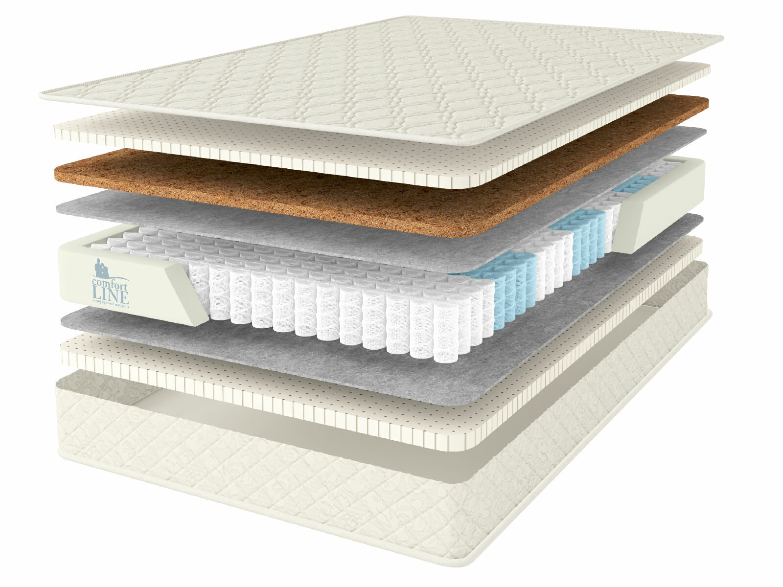 Кокосовое волокно с натуральным латексом придает жесткость, экологически чистый материал, который прекрасно вентилируется.