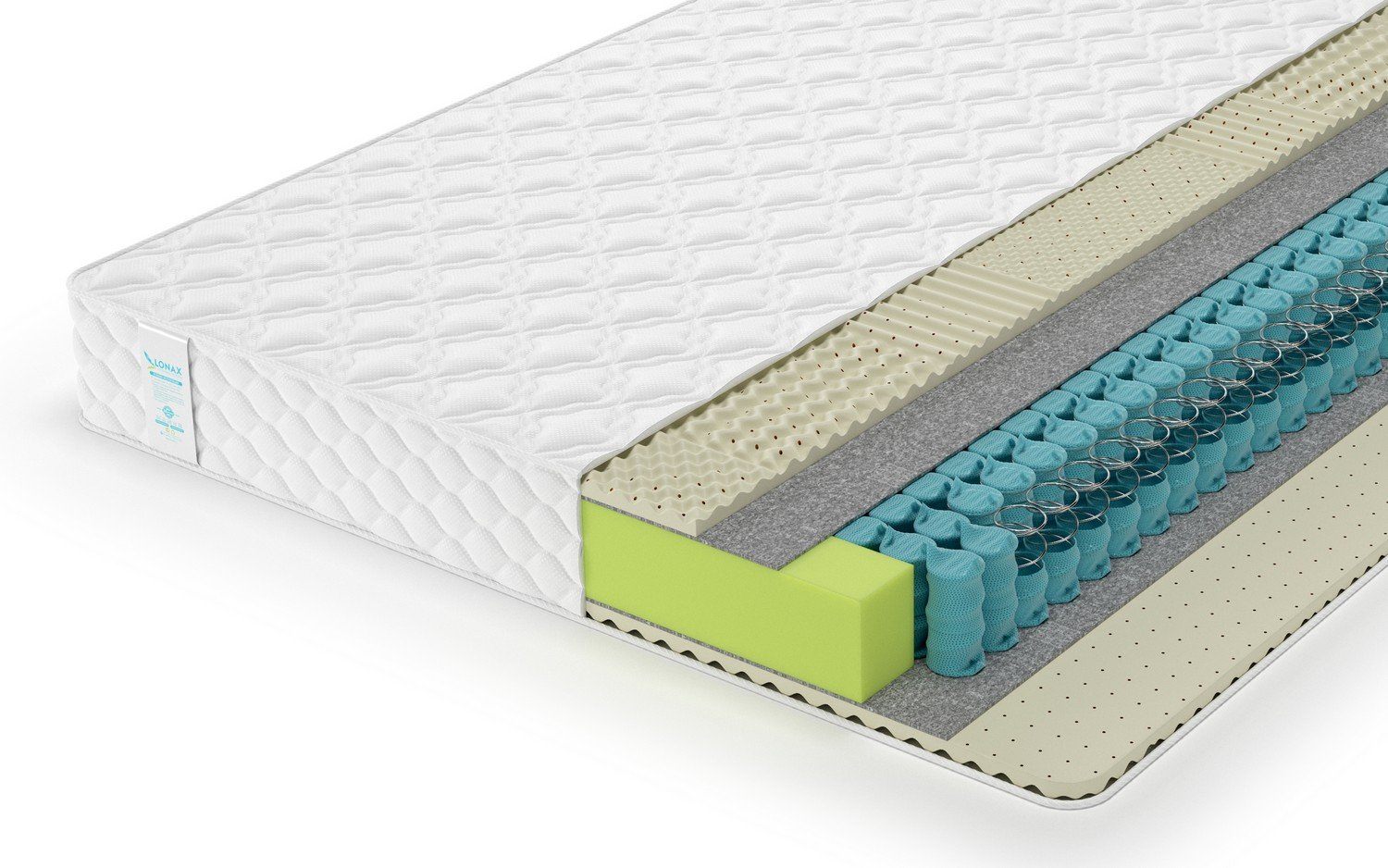 Спальные области модели обеспечены плитами латекса. Слои пены получили специальную семизональную поверхность, где каждая область приобрела свою плотностью и вид фигурной резки. Такое решение позволяет добиться наиболее оптимальной поддержки для всего тела. Ведь наше туловище давит на поверхность постели не равномерно, есть более «тяжелые» части, например, бедра и плечи, а есть более «лёгкие», такие как руки и голова. Зональность это учитывает и позволяет дать оптимальную поддержку конкретной части фигуры.