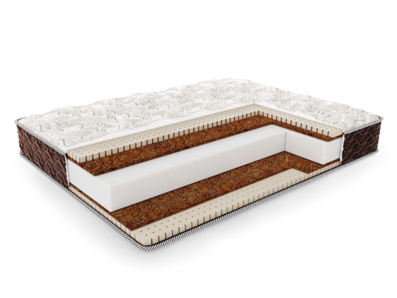 Кокосовая койра здесь отвечает за плотность спального места. Она гарантированно поддержит спину в правильном положении. Всё благодаря уникальной гибкости плиты, которая даёт ей возможность адаптации под естественную анатомию линий тела.