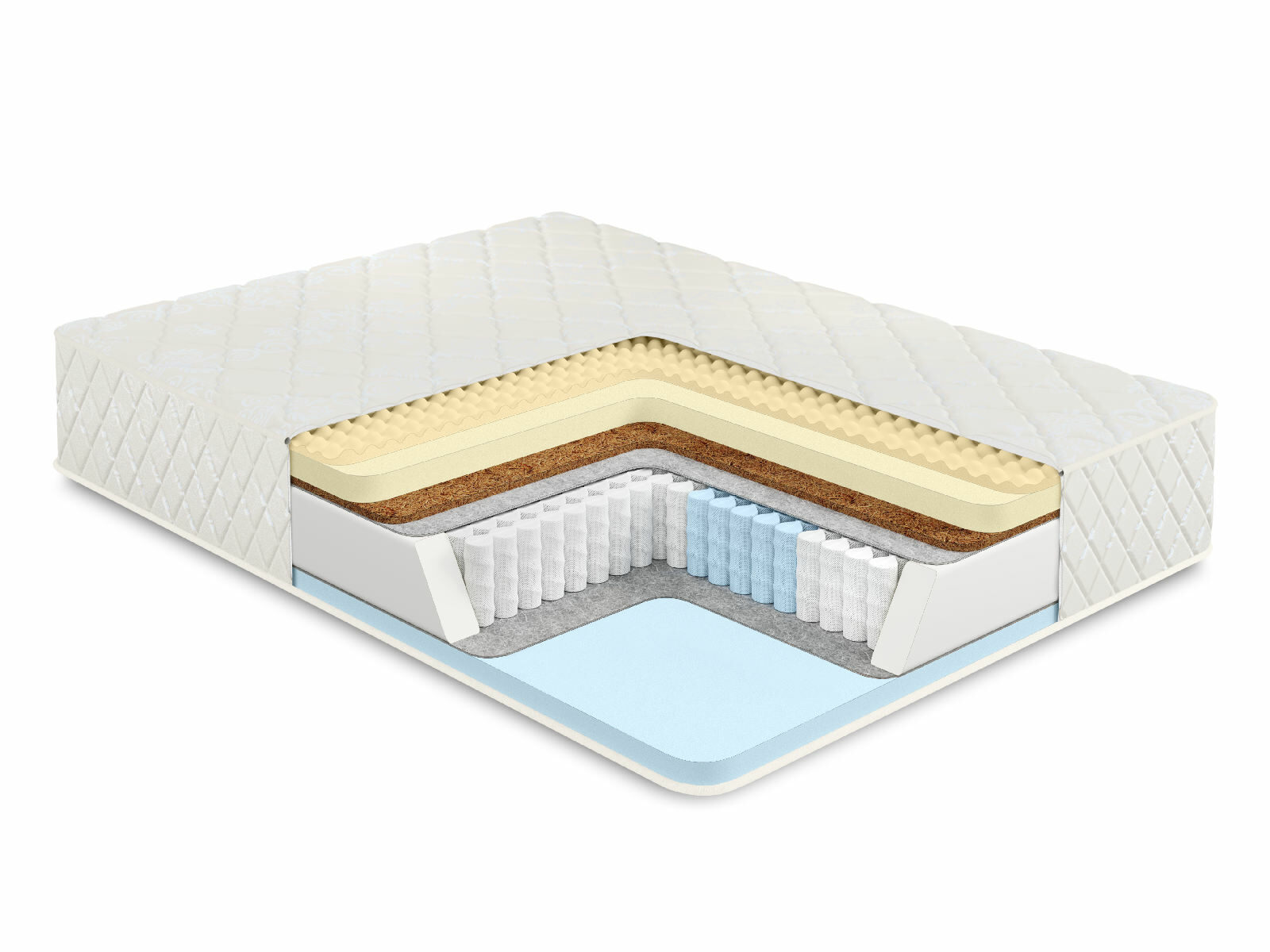 Кокосовое волокно с натуральным латексом придает жесткость, экологически чистый материал, который прекрасно вентилируется.