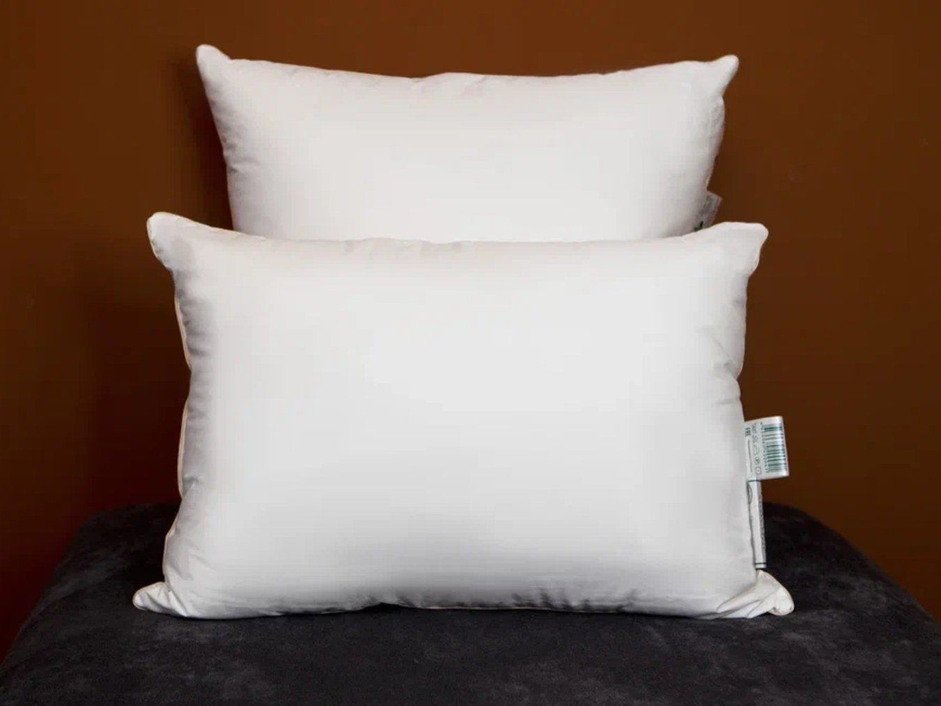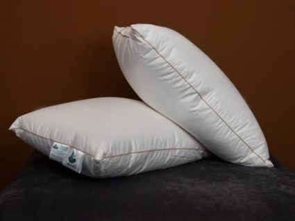 Ткань: 100% хлопок —гребенной сатин из длинноволокнистого хлопка, обеспечивающего ткани невероятную однородность и высокую плотность плетения: 310/248 нитей на 10 см²,140 г/м². Цвет белый. Наполнитель: Внешний слой — пуховый Экстра нового сбора, прошедший дополнительную ручную сортировку и антимикробную обработку (белого цвета), внутреннее ядро (для создания в подушке необходимой высоты и упругости) – натуральный пух первой категории (около 70% пуха).