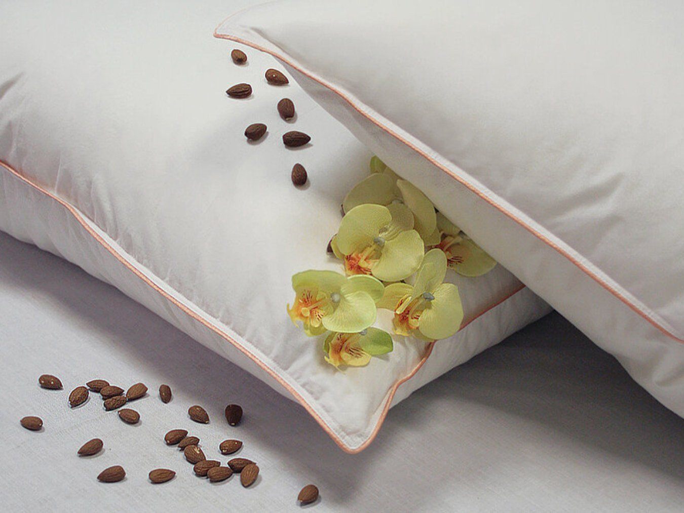 Вообразите комфорт сладких снов на подушке коллекции «Миндальное сердечко». В нежное облако из белоснежного пуха мы аккуратно поместили «миндальное сердечко» из пухо-перовой смеси. Секрет заключается в том, что скрытое от глаз и совершенно неощутимое «сердечко» из гусиных перышек, придает необходимую упругость подушке, создает необыкновенное ощущение комфорта во время сна. Чехол изделия выполнен из белого хлопка высокого качества, а весь ансамбль завершает атласный кант персикового цвета.