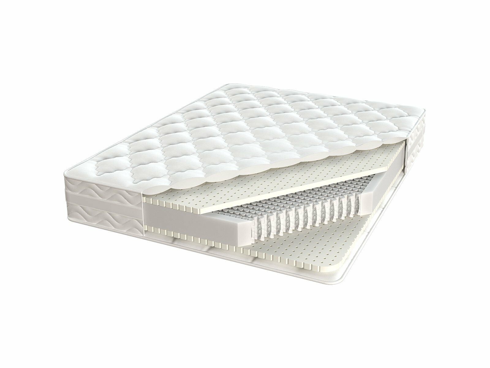 Матрас смягчает слой из каучукового латекса, который одновременно увеличивает общую упругость матрасного блока. Это очень комфортный и эластичный наполнитель, который способен виртуозно адаптироваться под анатомию и особенности фигуры человека.
