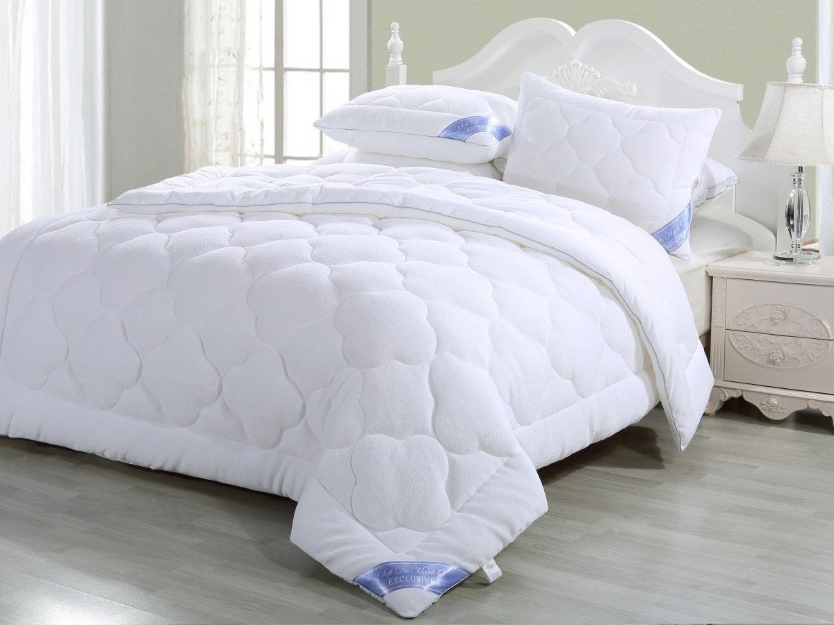 Верхняя часть одеял и подушек "Эксклюзив" - имеет махровую основу, которая лучше поглощает влагу, обладает высокой износоустойчивостью и прочностью, хорошо сохраняет форму. Наполнитель состоит из множества скрученных микроволокон, между которыми остается воздушное пространство, что позволяет наполнителю дышать. Одеяло великолепно стирается, быстро высыхает и не теряет объем.