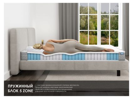 Матрас сочетает природный комфорт от кокоса и латекса на одной стороне с нежной пеной Мемори на другой, а 5-зональный блок гарантирует точечную ортопедическую поддержку.