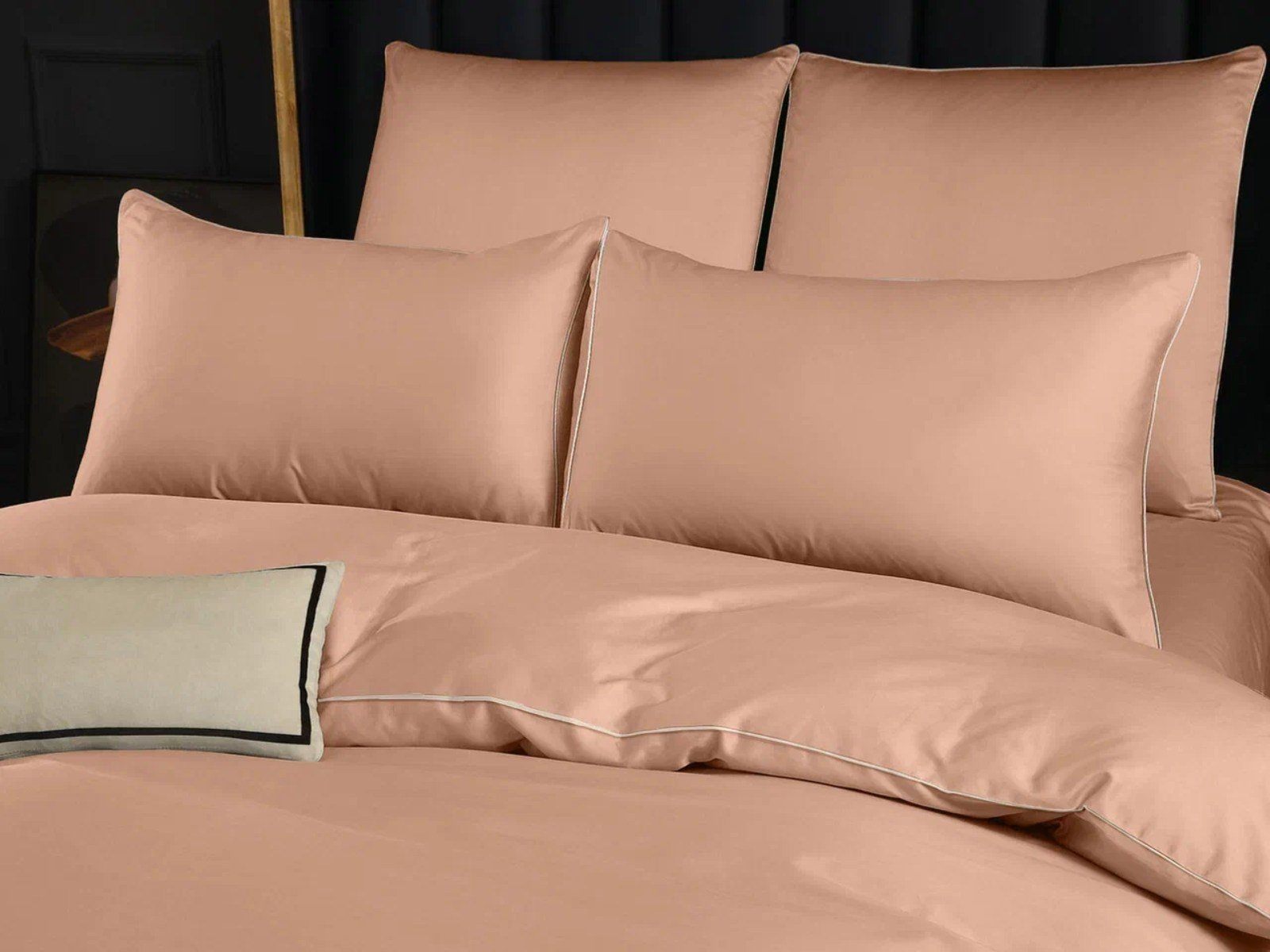 Пододеяльник украшен декоративным кантом по периметру и имеет удобную молнию по всей ширине, что значительно упрощает процесс его замены. Спокойный и деликатный светло-оливковый оттенок создаст атмосферу умиротворения и полного релакса в Вашей спальне.