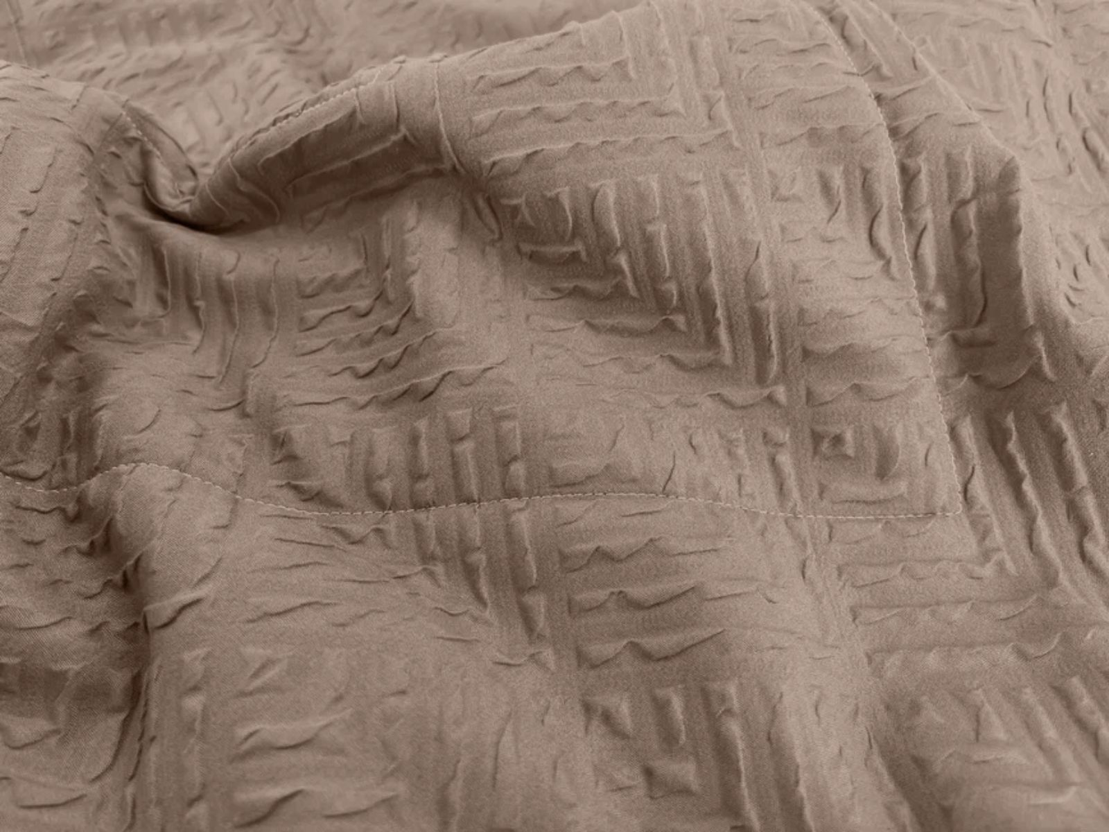 Покрывало Marenga создано для любителей оригинальных интерьерных решений. Объемная фактура ткани в сочетании с актуальным цветом бархатного таупа помогут создать неповторимый стиль в Вашей спальне. Сдержанный и одновременно запоминающийся дизайн покрывала украсит любой современный интерьер. Благодаря особой технологии производства, рельефный рисунок на ткани сохранится на протяжении всего срока использования изделия. Прочная ткань устойчива к деформациям, не пиллингуется, не оставляет затяжек. Оптимальное соотношение вискозы и полиэстера в составе наделяет покрывало такими важными свойствами как гипоаллергенность, антистатичность, износостойкость. Изделие не треубет особых условий ухода, легко стирается и быстро сохнет.