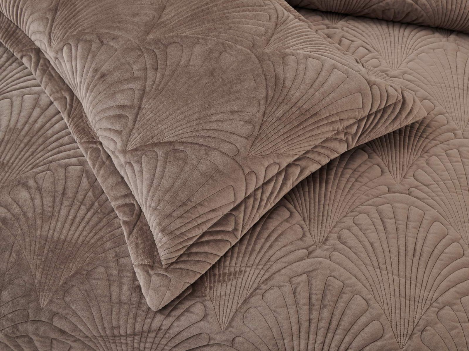 Роскошное велюровое покрывало Ариэль станет изюминкой любого интерьера, ведь оно потрясающе выглядит и приятное на ощупь. Обратите внимание на стежку покрывала – она выполнена в виде ракушек с эффектом 3D. Из-за особого плетения, велюровая ткань покрывала отражает свет и красиво переливается при различном освещении.