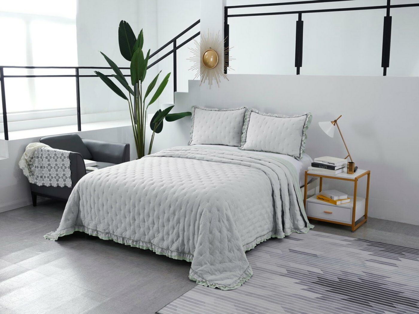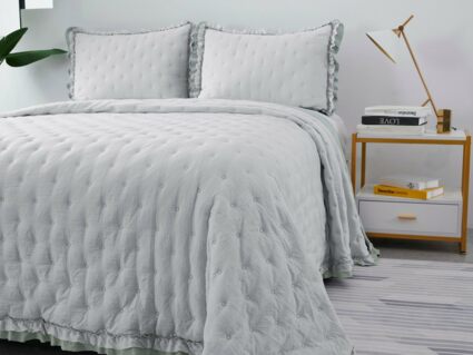 Двусторонние стеганные покрывала Элизабет выполнены из вискозы и хлопка, они легкие и прочные. В комплекте с покрывалом идут две наволочки, вы можете использовать покрывало по назначению, либо в качестве постельного белья. В любом случае, вы будете в восторге от этого комплекта!