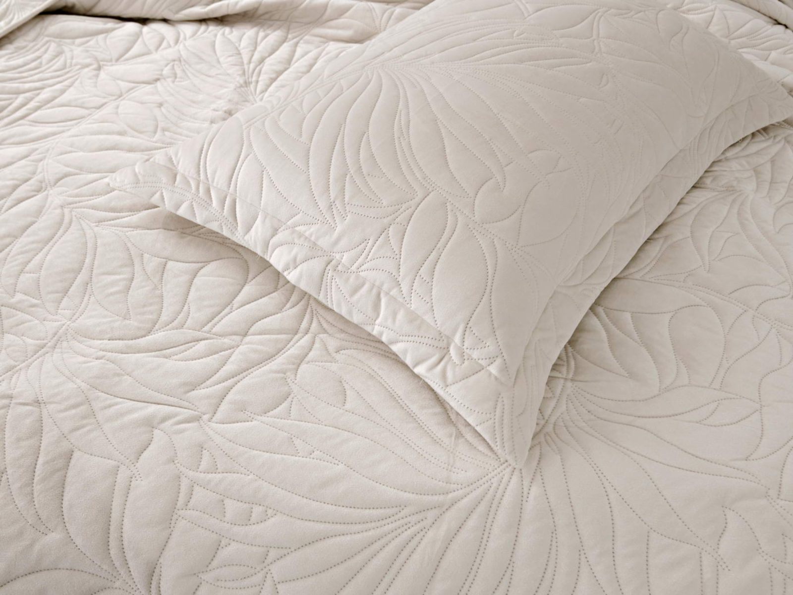 Стёганое покрывало Глория изготовлено из 100% вискозы, что делает его невероятно мягким и комфортным. Рисунок напоминает листья лавра. Такой орнамент подойдет большинству современных интерьеров.