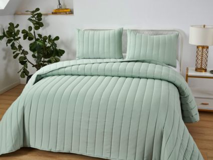 Это не просто практичное и долговечное покрывало. Это универсальное покрывало, которое подойдет к любому интерьеру и разнообразит его. Покрывало можно использовать как легкое одеяло. Оно выполнено в восьми спокойных оттенках: мокко, крем, лиловый, изумруд, розовый, бежевый, серый и пудра. Стеганое покрывало Микаэль прослужит очень долго, оно не полиняет и не вытянется. Стежка придает покрывалам не только прочность, но изысканность и изящество.