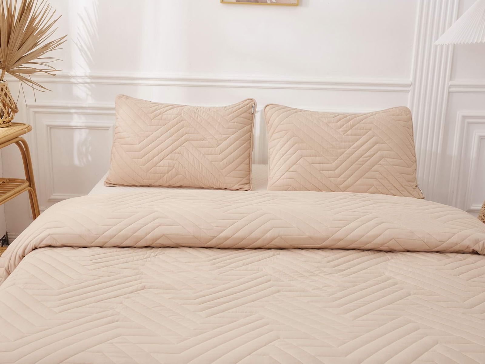 В комплект входят покрывало и одна либо две наволочки (50х70 см) из аналогичного материала в зависимости от размера. Изделия гипоаллергенны, они подходят детям и людям с чувствительной кожей. Покрывала и наволочки не линяют, сохраняют форму и цвет при многочисленных стирках и не выгорают на солнце. Изделия можно стирать в щадящем режиме при температуре не выше 30 градусов.