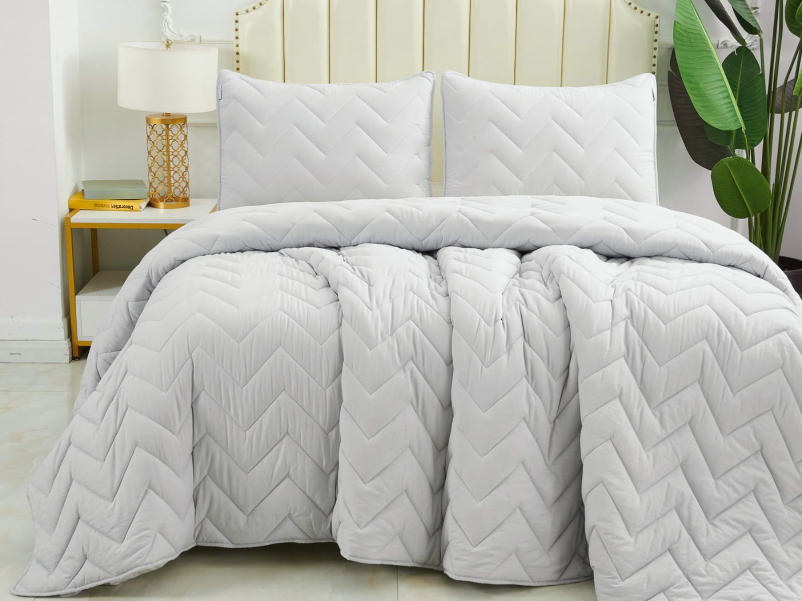 В комплект входят покрывало и одна либо две наволочки (50х70 см) из аналогичного материала в зависимости от размера. Изделия гипоаллергенны, они подходят детям и людям с чувствительной кожей. Покрывала и наволочки не линяют, сохраняют форму и цвет при многочисленных стирках и не выгорают на солнце. Изделия можно стирать в щадящем режиме при температуре не выше 30 градусов.