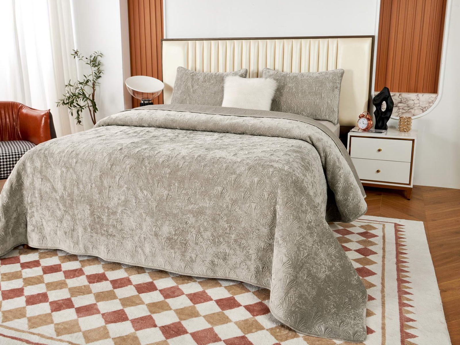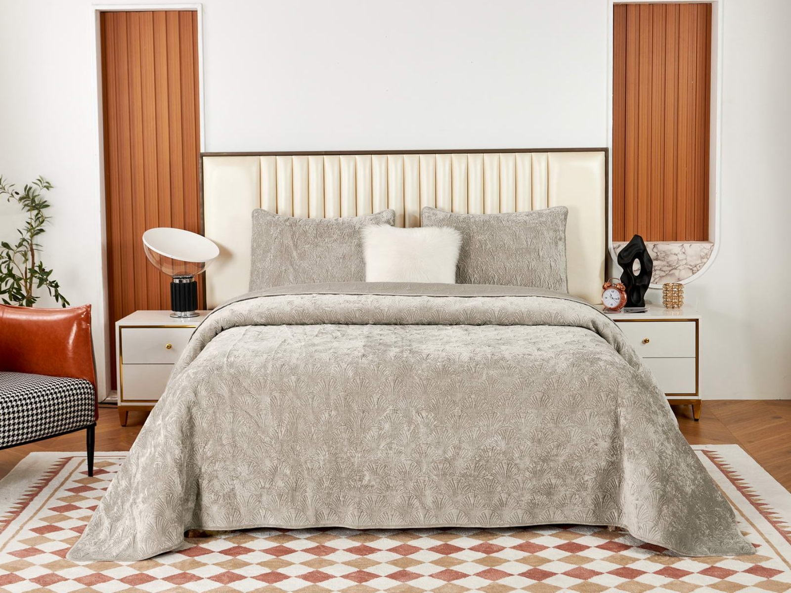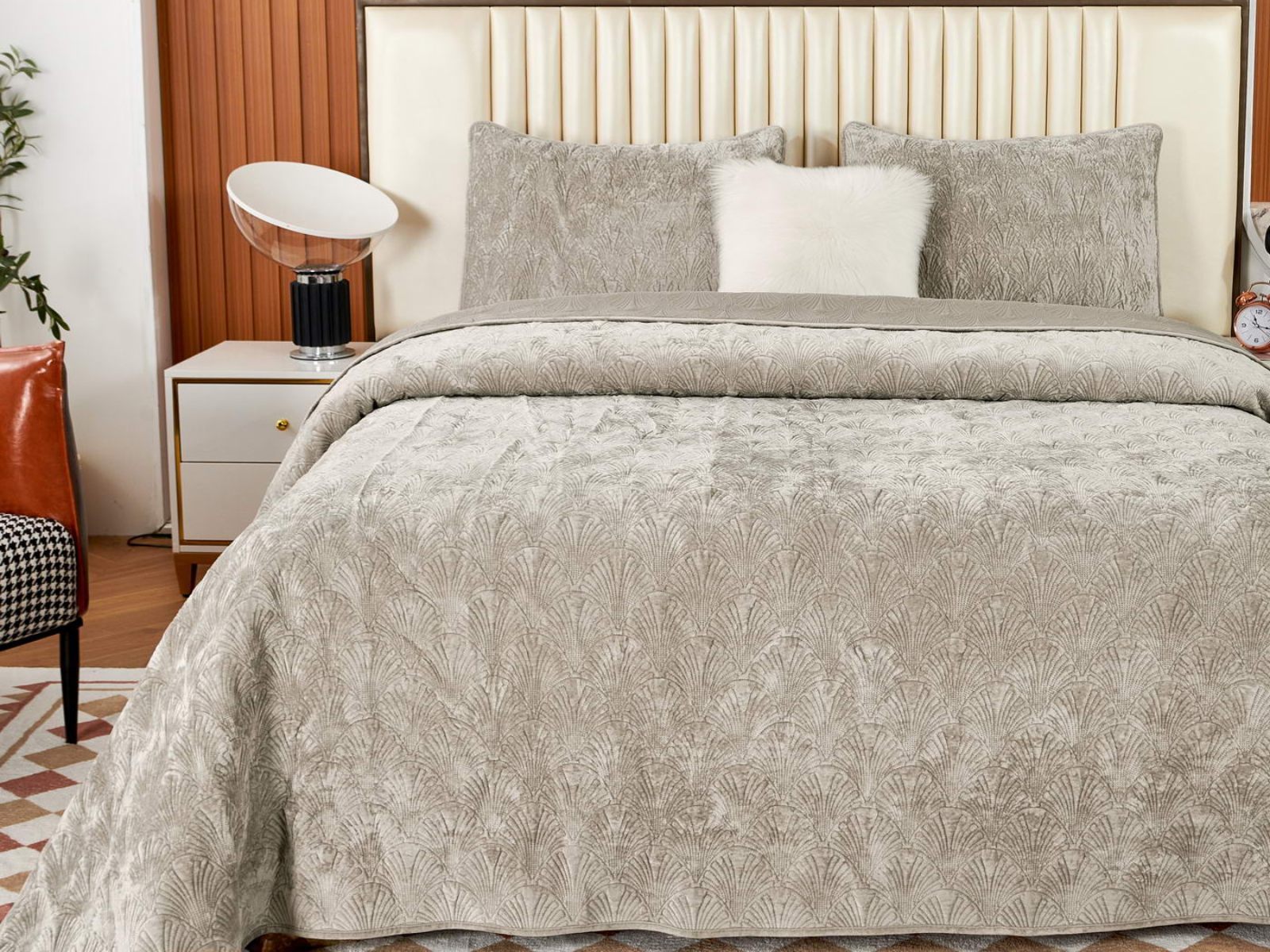 Очаровательное покрывало "Розалин" – идеальный спутник вашего отдыха и уюта. Это воплощение комфорта и стиля создано из высококачественного бархата в различных трендовых цветах и обязательно подчеркнёт уникальность вашего интерьера.
