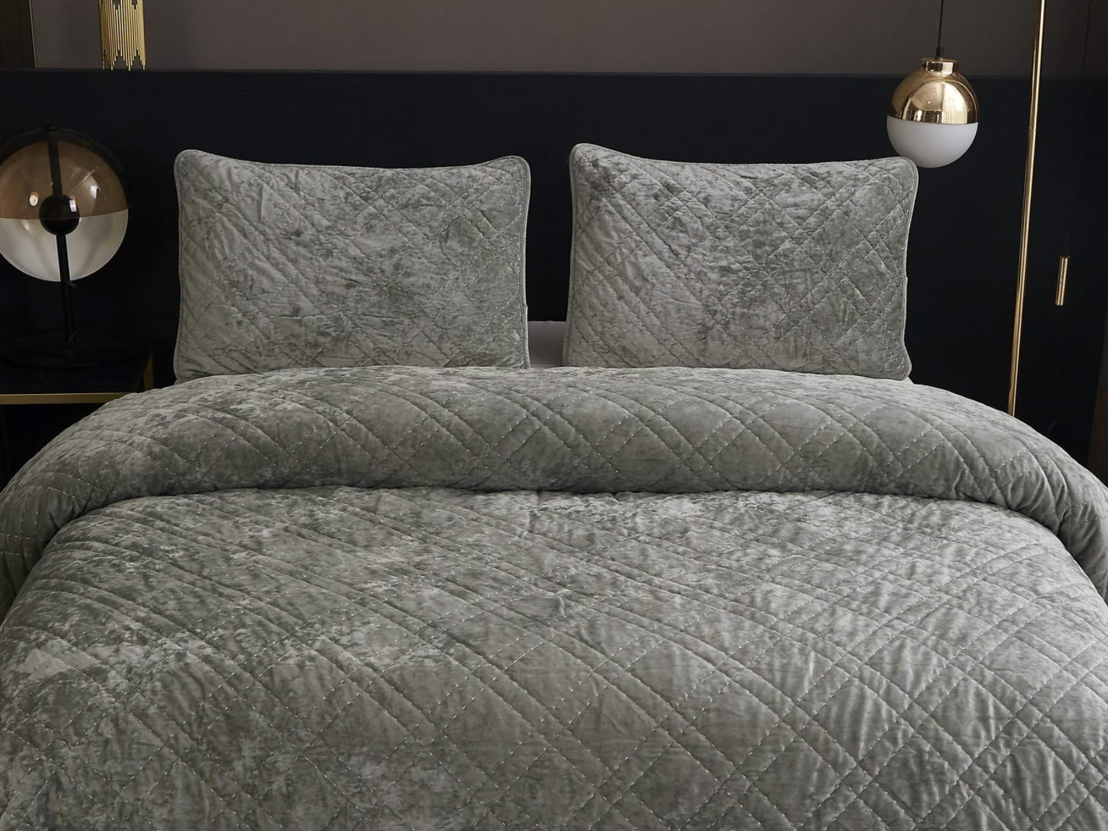 Покрывало Селена выполнено в девяти оттенках: пудра, антрацит, беж, изумруд, капучино, пепел роза, серебро, стоун, терракот. Они подойдут практически для любого интерьера, от классического, до модерна или романтического. Стеганое бархатное покрывало будет необыкновенно смотреться на вашей постели. В комплект входят покрывало и одна либо две наволочки (50х70 см) из аналогичного материала в зависимости от размера.