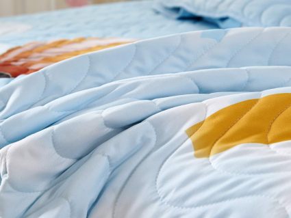 Покрывала коллекции «Sunny day» не только украшают комнату, но и защищают постель от грязи и пыли. А если маленькому хозяину станет холодно, теплое покрывало согреет его. Покрывала сделаны из хлопка и вискозы, хлопок хорошо согревает, а вискоза помогает изделию держать форму.