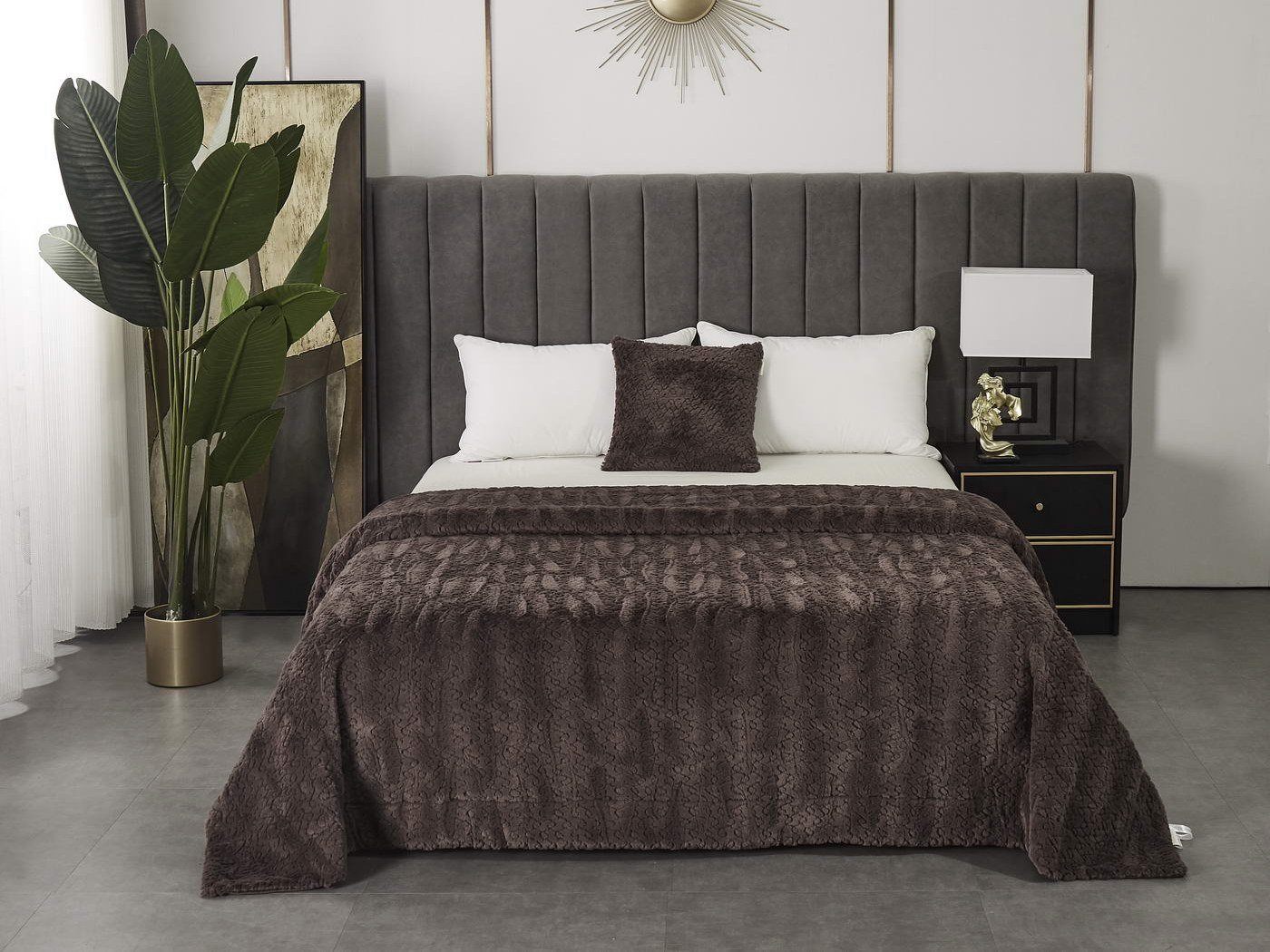 Пледы и наволочки Теодор продаются отдельно, а это расширяет простор для творчества. Вы можете подобрать к белому пледу наволочки цвета мокко или розовые, а к черному – белые или бежевые. Не ограничивайте свою фантазию.