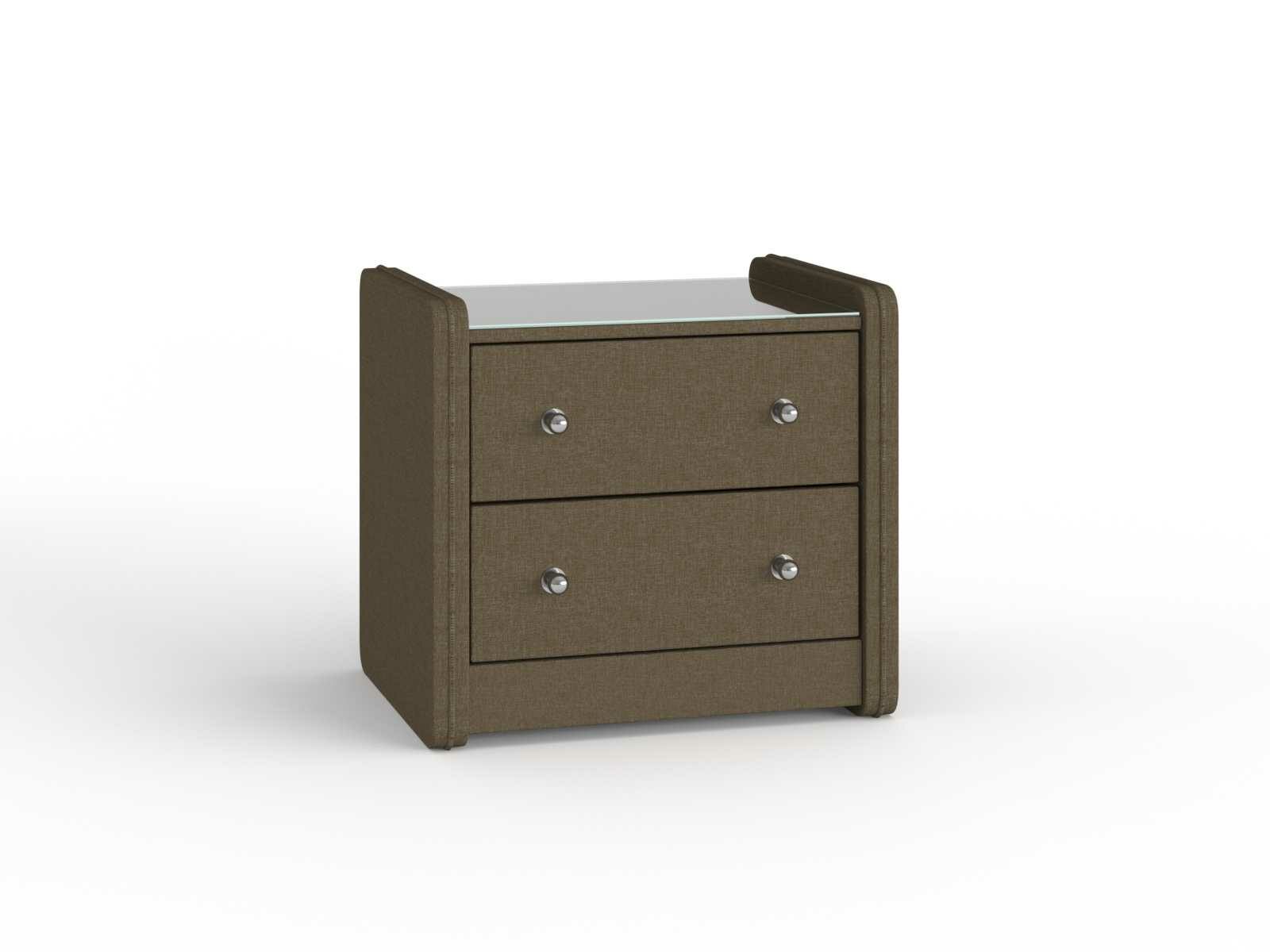 Тумба прикроватная Сандрига выполнена в изысканном классическом стиле. Обивка из высококачественного материала придает мебели особый шарм. Модель легко впишется в современные интерьеры и станет практичным дополнением меблировки спальни. На стеклянной столешнице расположится ночник, книга или чашка чая, а для необходимых под рукой мелочей предусмотрены два выдвижных ящика с ручками.