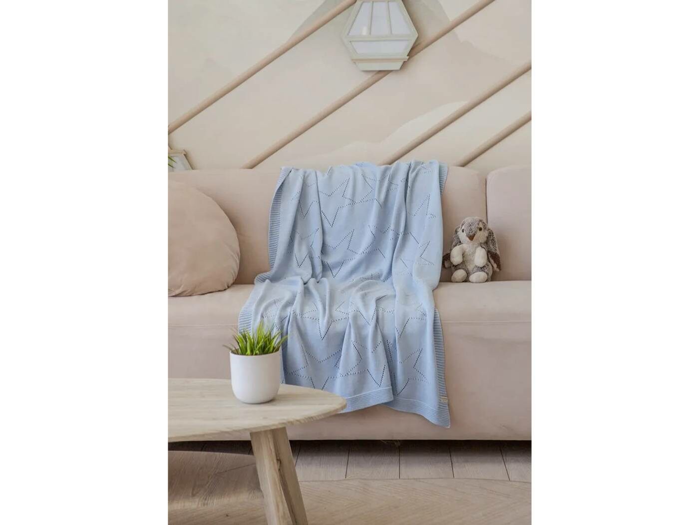 Пледик SELF STARS имеет современный дизайн в виде ажурных звезд. Связан машинным способом из мягкого гипоаллергенного 100% хлопка.