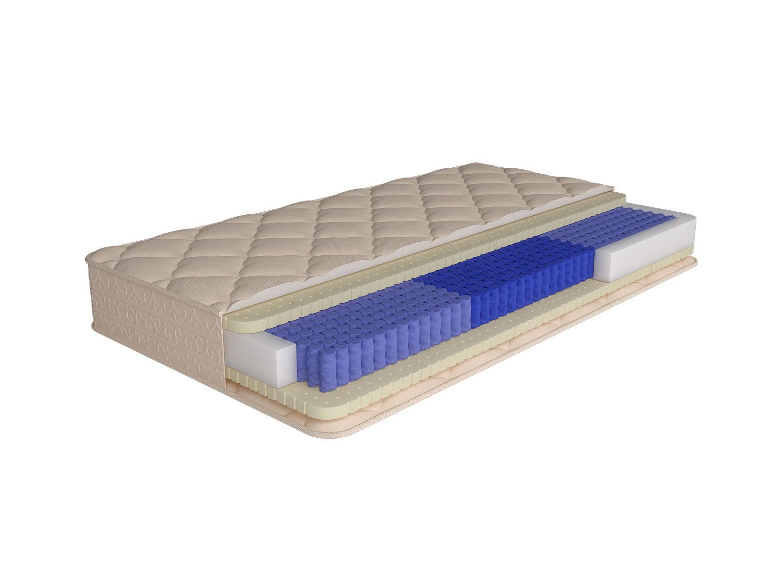 Для зон, поддерживающих ноги и голову, используется мягкий пружинный блок, обеспечивающий горизонтальное положение шейного отдела позвоночника и улучшающий кровообращение нижних конечностей.