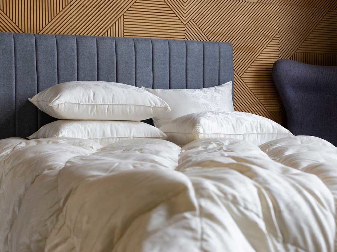 Сочетание сливочного пуходержащего жаккардового сатина PAISLEY из натурального 100% шелка и первоклассного пухового наполнителя категории “Экстра” повышенной упругости (Fill Power не менее 850 ед.) – это совершенный эксклюзив в мире постельных принадлежностей. Высокая плотность ткани и двойная отстрочка не позволят пуху мигрировать из изделия и не пропустят частички пыли внутрь. Эксклюзивные ткани создаются на единственном производстве в Европе – старейшей немецкой ткацкой фабрике – в лимитированном количестве. Для того, чтобы ткать шелковый пуходержащий жаккард с узором, необходимо обладать высочайшим уровнем мастерства. Кассетные одеяла ручной работы предназначены для использования в холодное время года. Каждая кассета размером 30х30 см наполнена отборным белым пухом вручную. Как и всякий эксклюзив, изделия этой коллекции требуют особого ухода при обслуживании: мы не рекомендуем их стирать, допускается только сухая чистка изделий.