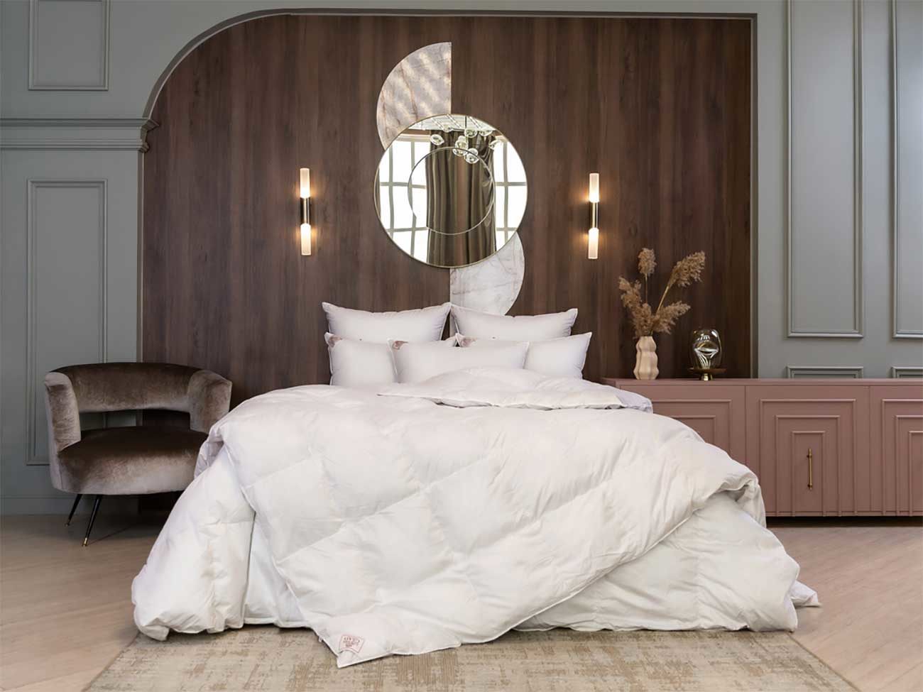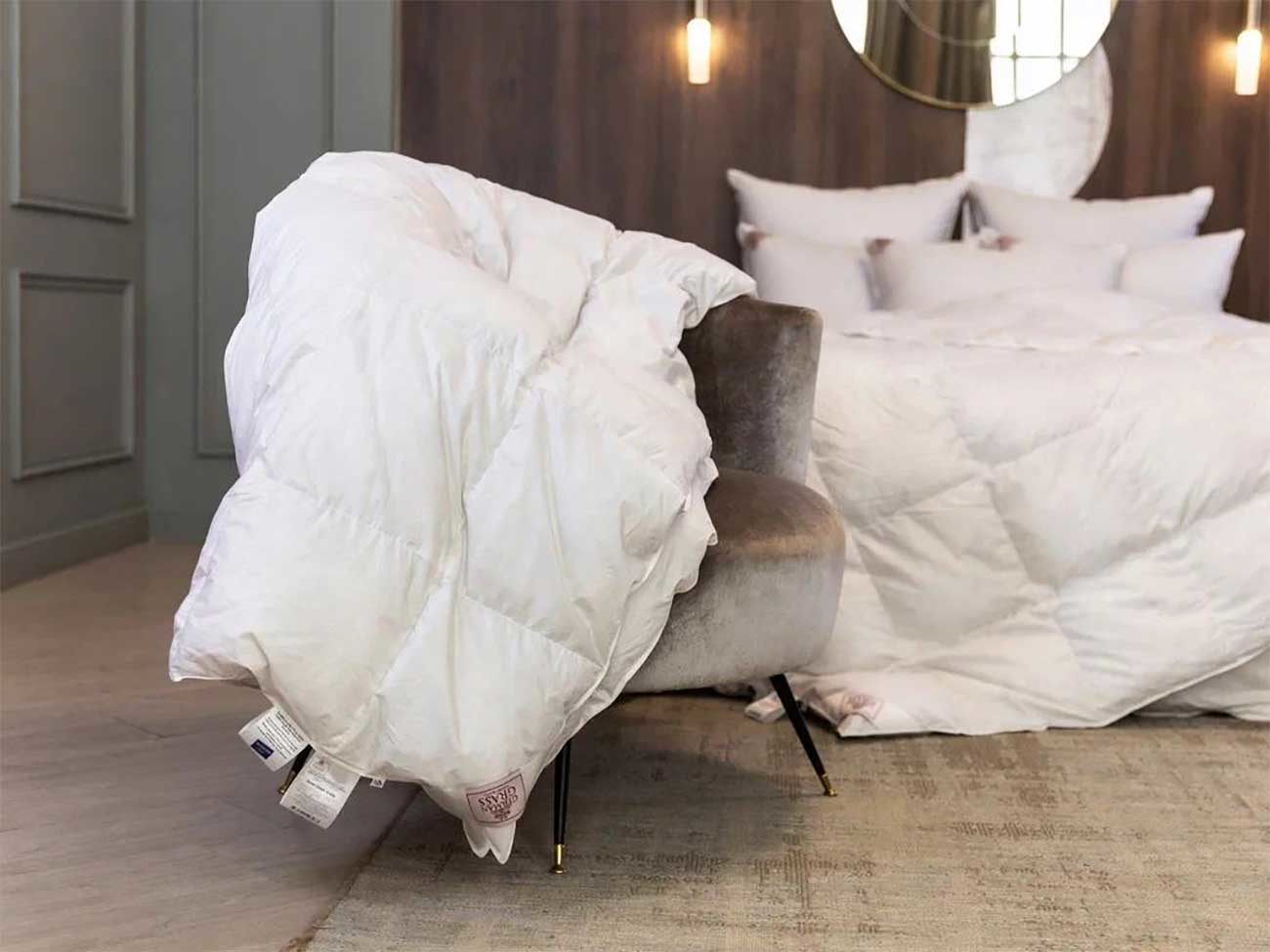 Кассетные пушистые одеяла коллекции GRASS SILVER DOWN LINE наполнены серым пухом гусей Тулузской породы категории “Экстра”. Чехлы выполнены из немецкой ткани, прошедшей финишную обработку SanProCare® Sensitive, которая позволяет материалу усиленно поглощать и отдавать влагу. Ткани сертифицированы по OEKO-TEX® Standard 100 – международному стандарту безопасности текстильных изделий. Ткани, отмеченные маркировкой «Bramscher Tuch» – это безусловный знак качества и великолепный результат работы специалистов из города Бра́мше в Германии. Высочайшей оценки требует буквально все: от высококачественного сырья и тончайшей пряжи до заключительной эксклюзивной отделки тканей. Сочетание тонкой ткани и серого пуха придают изделиям серебристый оттенок, что легло в основу названия коллекции. Рекомендована стирка при температуре до 30°С.