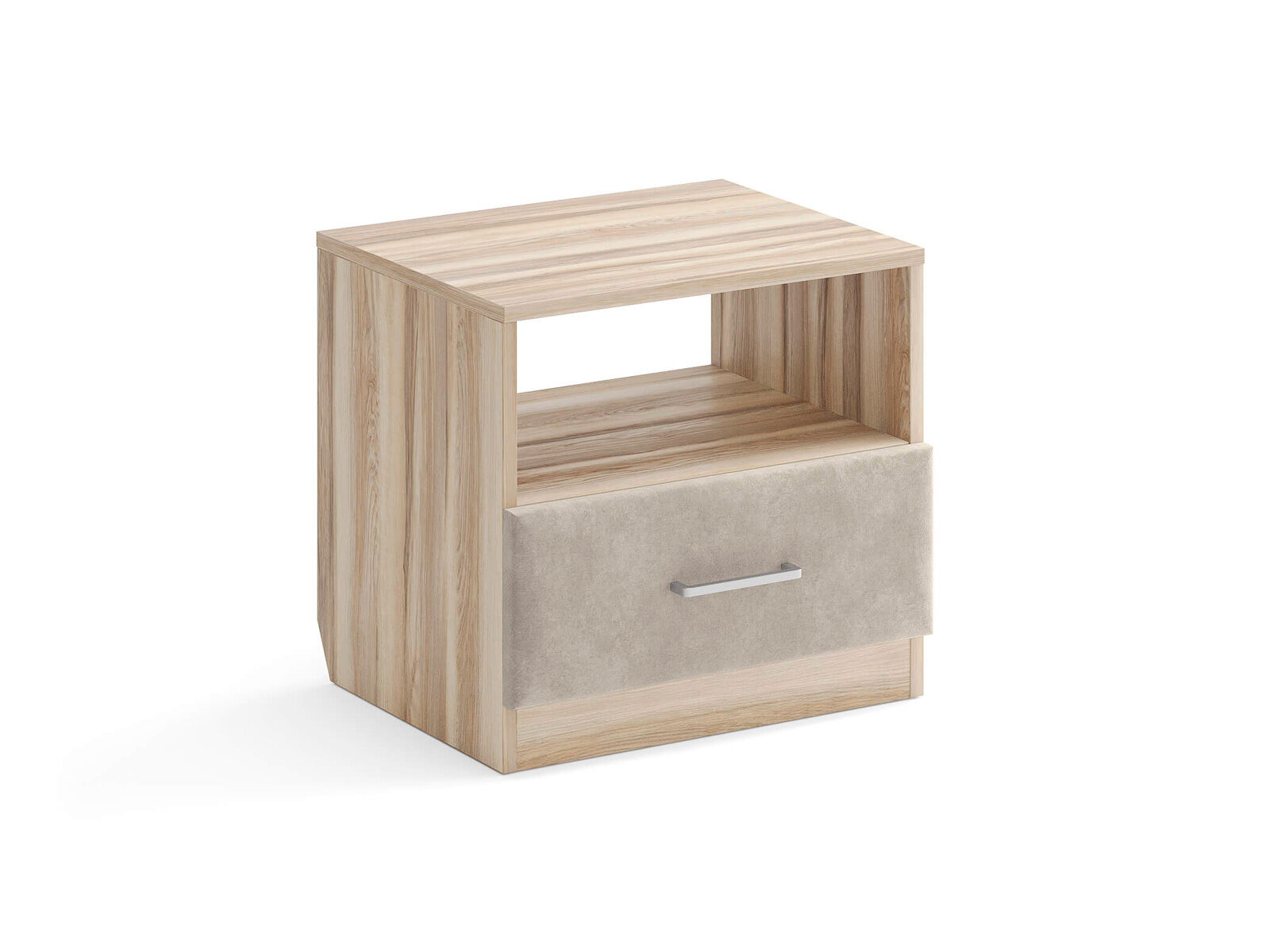 Элегантная комбинированная тумба, сочетающая в себе лаконичность ЛДСП и уют мягких фасадов ящиков, обтянутых тканью. Конструкция тумбы предусматривает открытую нишу для мелочей и вместительный выдвижной ящик с направляющими скрытого монтажа и доводчиками. Корпус из ЛДСП гарантирует долговечность и устойчивость к механическим повреждениям, а мягкие фасады в ткани и изящные металлические ручки добавят уют. Большое разнообразие текстур и цветовых решений для гармоничной интеграции в любой интерьер.