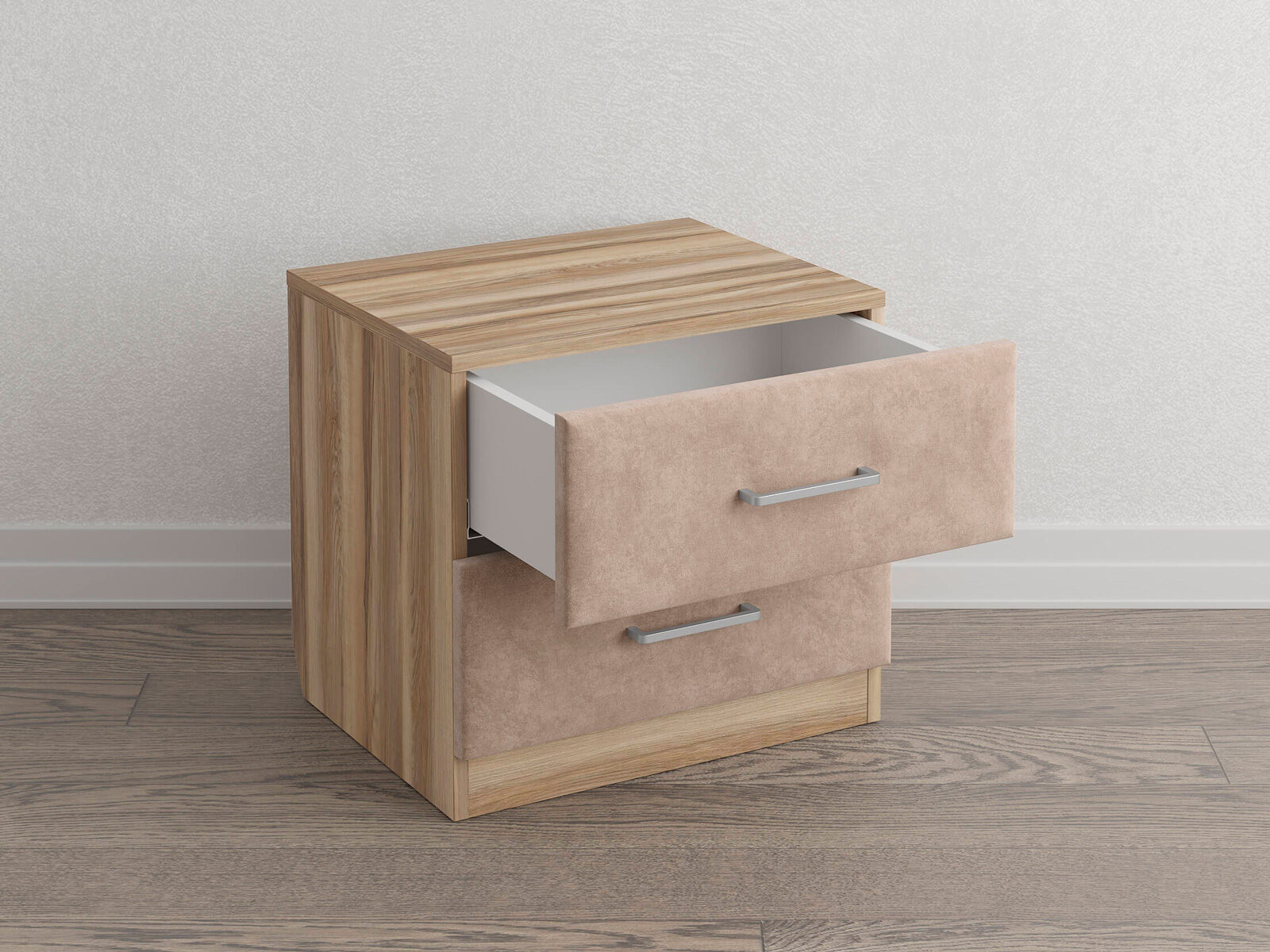 Элегантная комбинированная тумба, сочетающая в себе лаконичность ЛДСП и уют мягких фасадов ящиков, обтянутых тканью. Конструкция тумбы предусматривает два вместительных выдвижных ящика с направляющими скрытого монтажа и доводчиками. Корпус из ЛДСП гарантирует долговечность и устойчивость к механическим повреждениям, а мягкие фасады в ткани и изящные металлические ручки добавят уют. Большое разнообразие текстур и цветовых решений для гармоничной интеграции в любой интерьер.